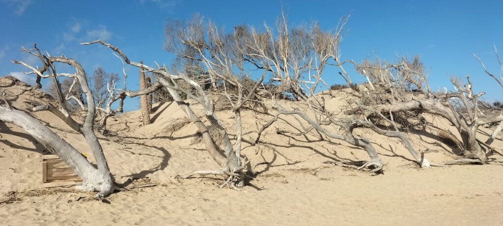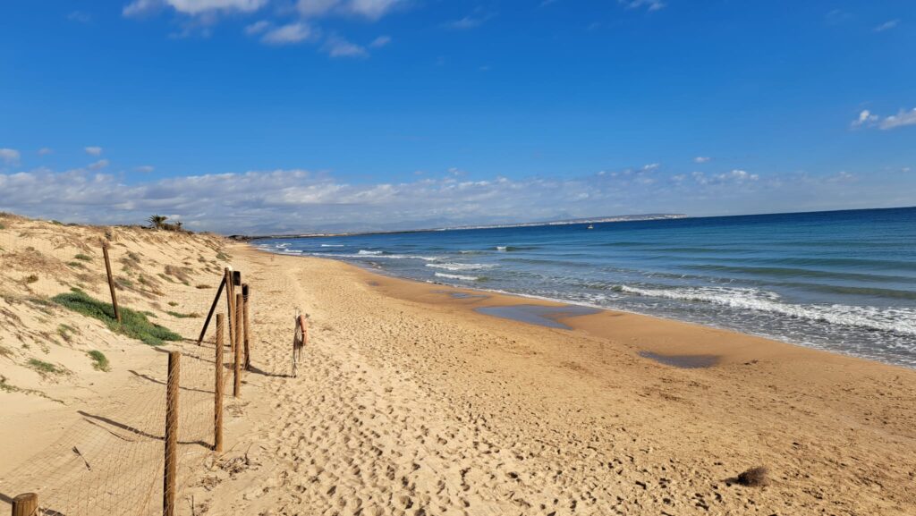 Guardamar del Segura, en noviembre, es un pueblo algo fantasma, rodeado de urbanizaciones que en verano imaginamos repletas de veraneantes y que ahora, abandonadas, languidecen. Eso no obstante, no le faltan sitios de interés, como el Parque Reina Sofia o la desembocadura del Segura.